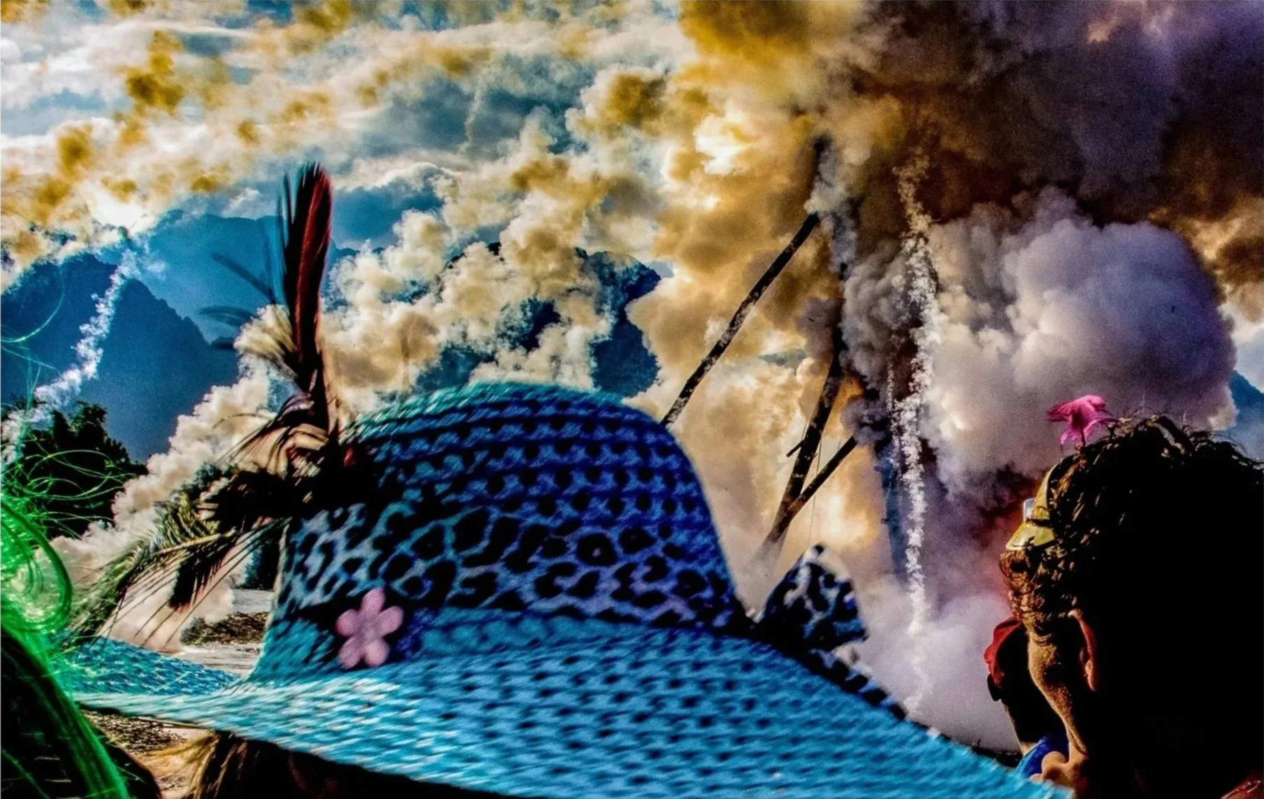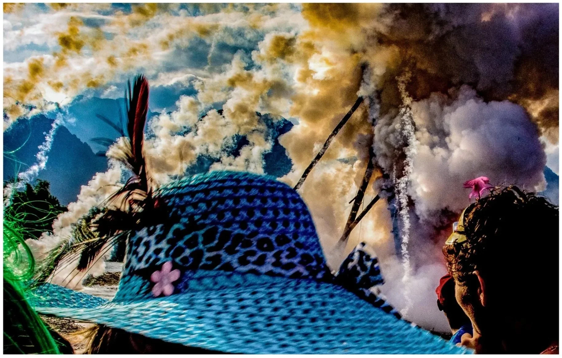 The festival takes over the city for days — parades, floats, dancers, smoke machines — before moving to the outskirts, where teams from nearby villages launch giant handmade rockets into the sky. They compete for height, precision and pride.