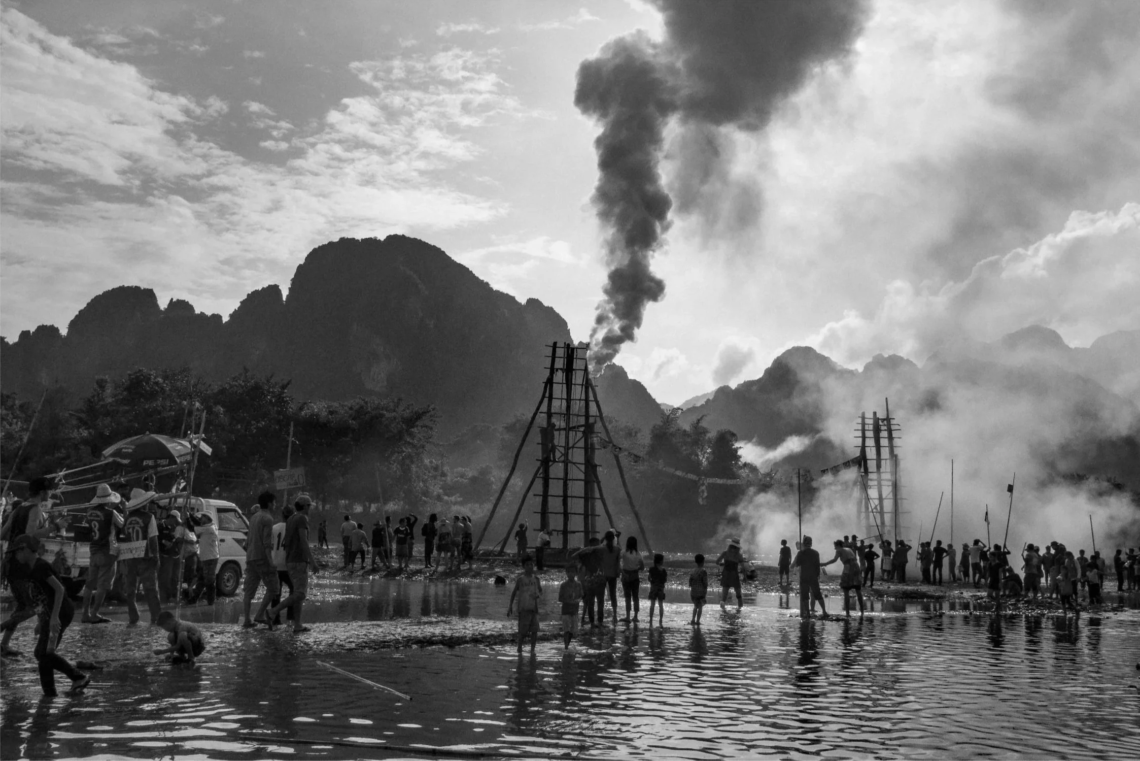 The following black and white, and one colour photographs were made during Bun Bang Fai in Vang Vieng, Laos, in 2014 — all captured within a single day.