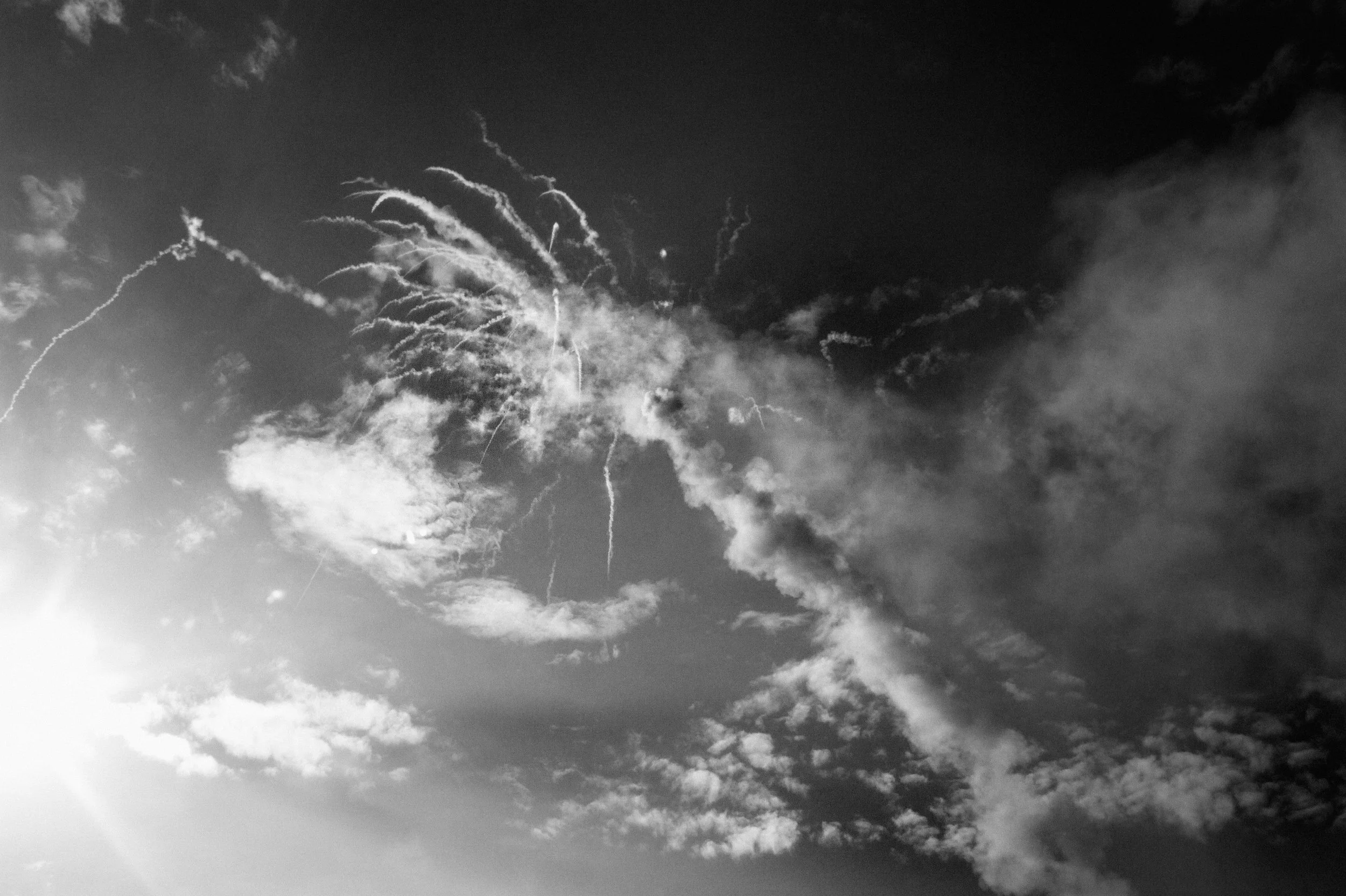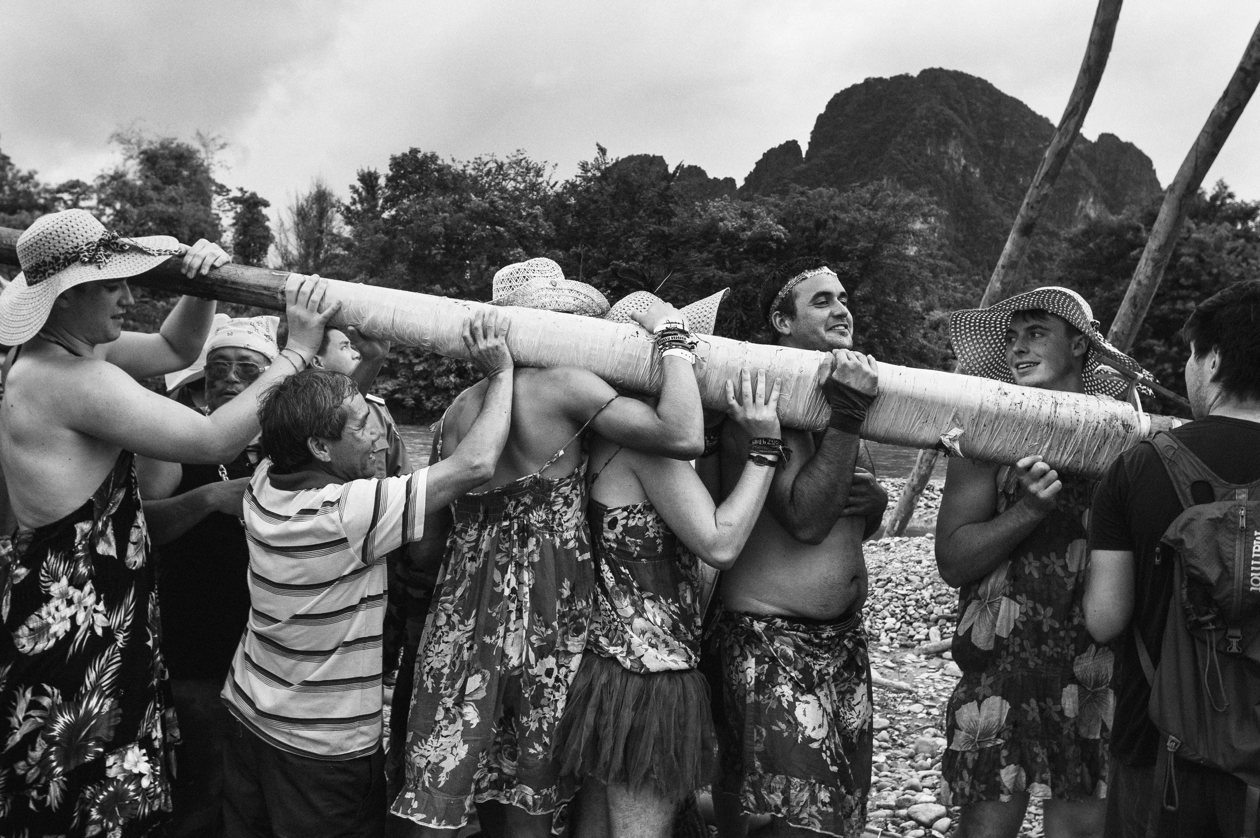 The following black and white, and one colour photographs were made during Bun Bang Fai in Vang Vieng, Laos, in 2014 — all captured within a single day. Held at the start of the wet season, the festival is rooted in animist and pre-Buddhist beliefs. Large handmade rockets are launched into the sky to summon rain — part ceremony, part celebration.